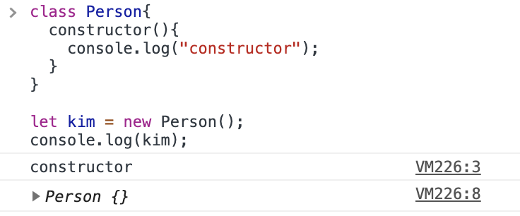 위의 사진처럼 콘솔에 kim을 출력하기 전에 constructor라는 텍스트가 먼저 출력이 되었다는 것은 이 constructor라는 함수가 객체가 생성되는 과정에서 실행되었다는 것입니다.