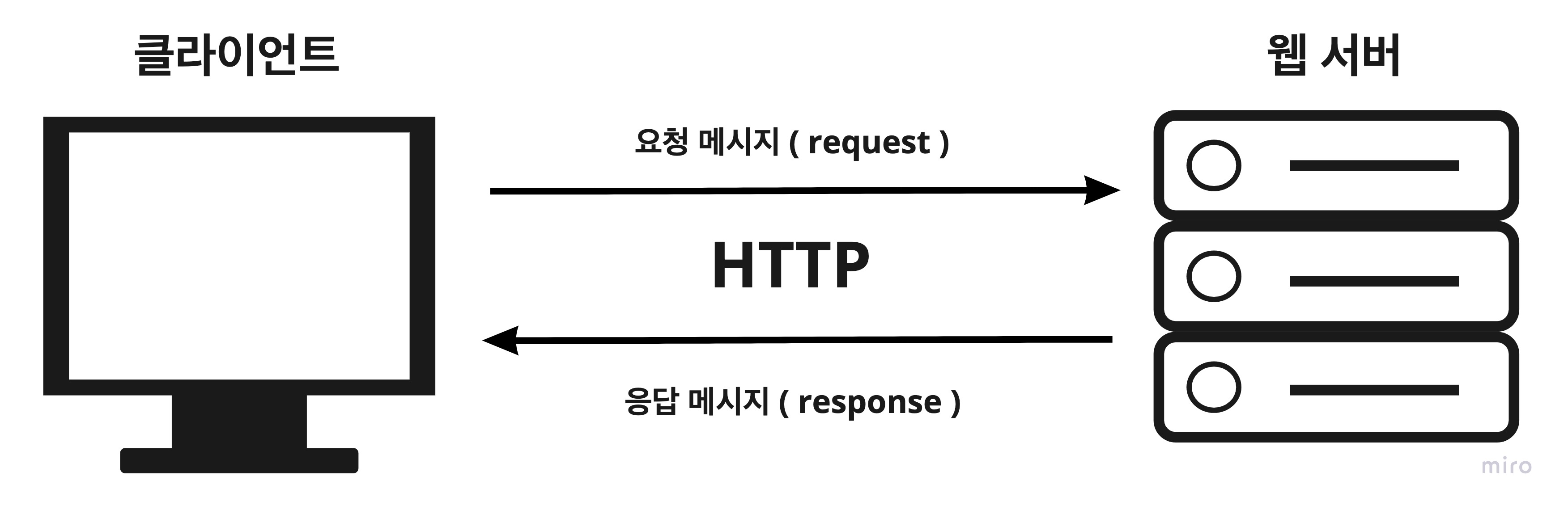 HTTP에서는 클라이언트가 서버에 요청 메시지를 보내고 이에 대해 서버가 응답 메시지를 반환합니다.