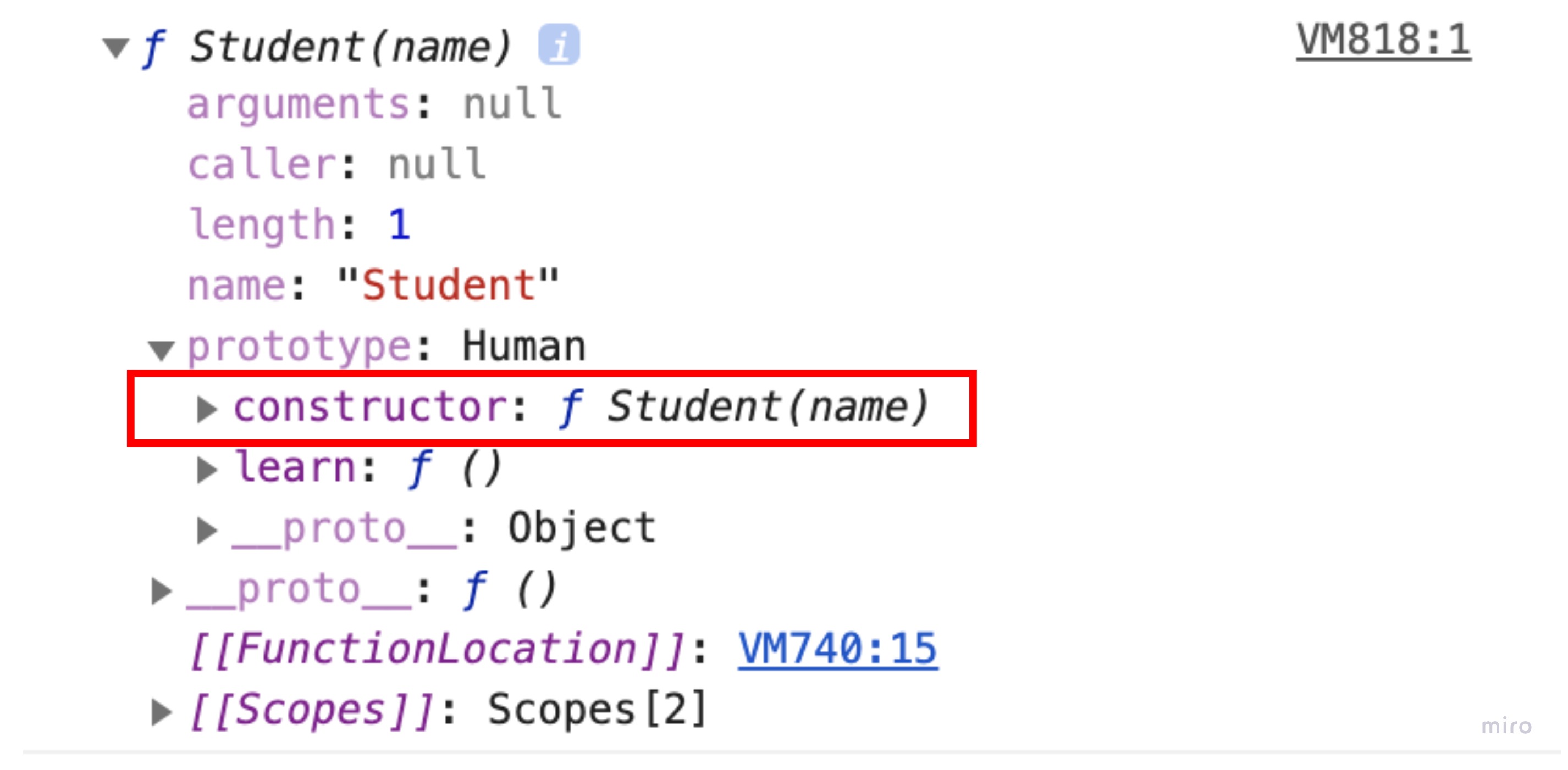 물론 prototype과 연결되어 있는 __proto__를 열어보면 Human에서와 같은 constructor: ƒ Human(name) 을 찾을 수는 있습니다.
