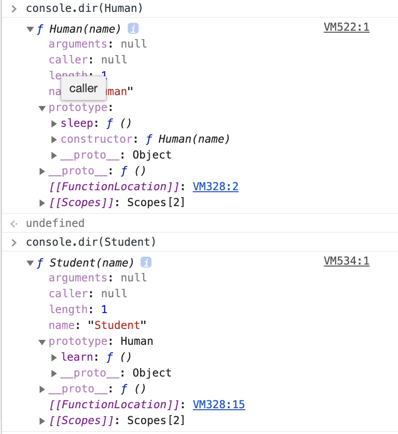 먼저 위의 Human과 Student를 console.dir() 로 출력해서 살펴보겠습니다.